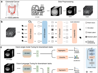 CRCFound is a self-supervised colorectal cancer CT foundation model designed to improve preoperative risk stratification and downstream clinical prediction tasks under limited annotation conditions. The model is pretrained on large-scale unlabeled 3D CT data and then adapted to multiple diagnostic and prognostic tasks, showing strong transferability and generalization. This work provides a practical path to leverage routine CT imaging for precision diagnosis and personalized treatment planning in colorectal cancer.